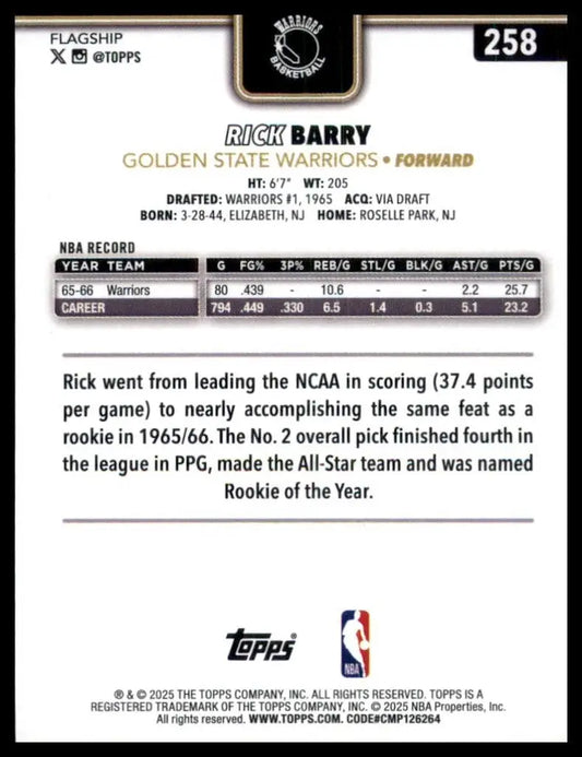 2025-26 Topps Blackout Rick Barry #258 Golden State Warriors Basketball Card NBA