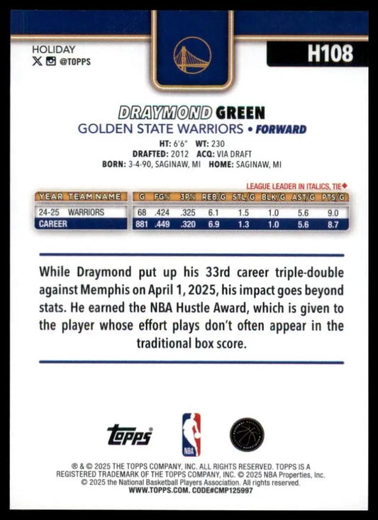 2025-26 Topps Holiday Draymond Green #H108 Golden State Warriors Basketball Card