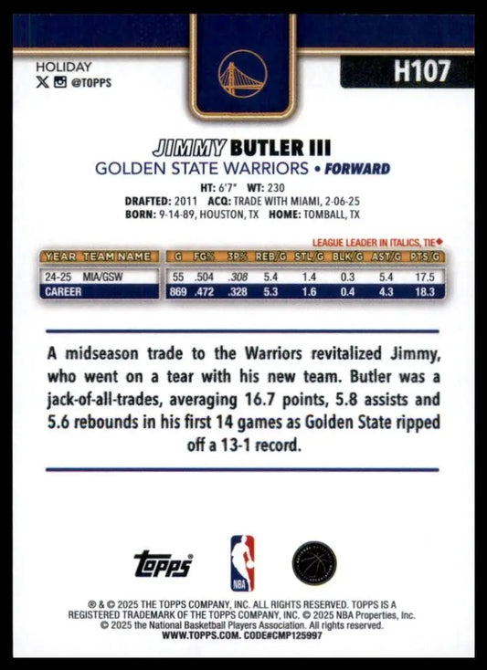 2025-26 Topps Holiday Jimmy Butler III #H107 Golden State Warriors Basketball