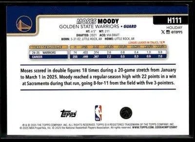 2025-26 Topps Holiday Moses Moody #H111 Golden State Warriors