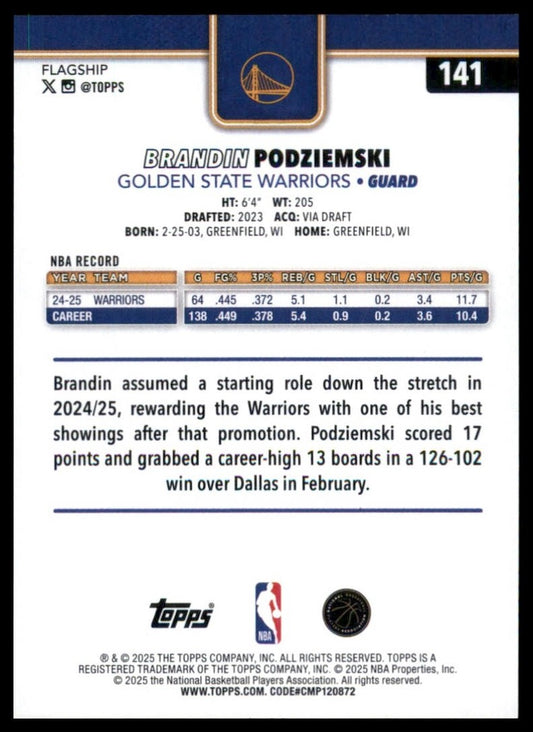 2025-26 Topps Brandin Podziemski #141 Golden State Warriors Basketball Card NBA