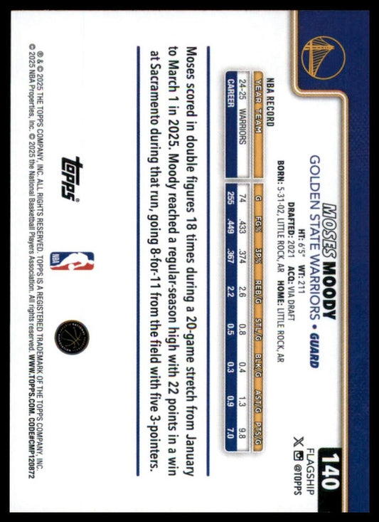 2025-26 Topps Moses Moody #140 Golden State Warriors Basketball Card NBA Sports