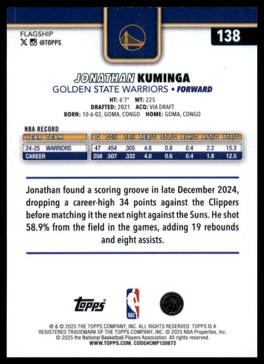 2025-26 Topps Jonathan Kuminga #138 Golden State Warriors Basketball Card NBA