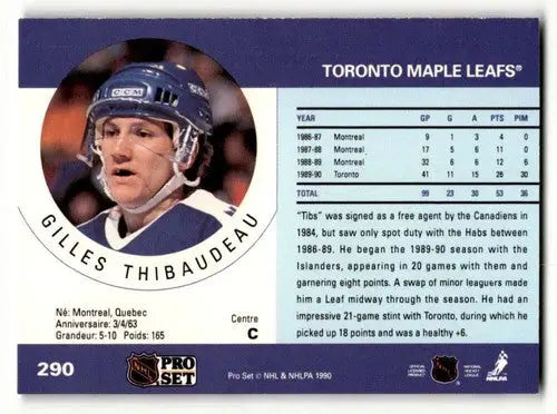 1990 Pro Set #290 Gilles Thibaudeau Toronto Maple Leafs Hockey Cards ID:60544