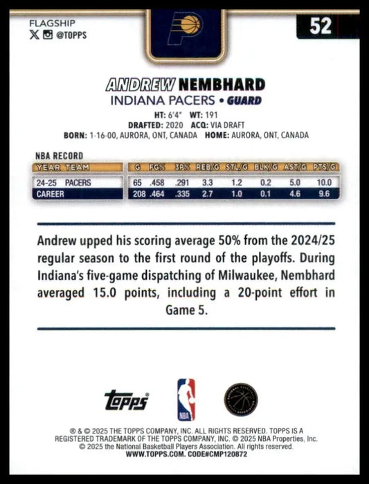 2025-26 Topps Andrew Nembhard #52 Indiana Pacers Basketball Card NBA Sports
