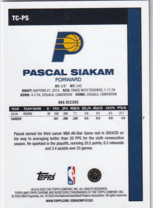 2025-26 TOPPS CHROME #TC-PS PASCAL SIAKAM- MOJO- INDIANA PACERS