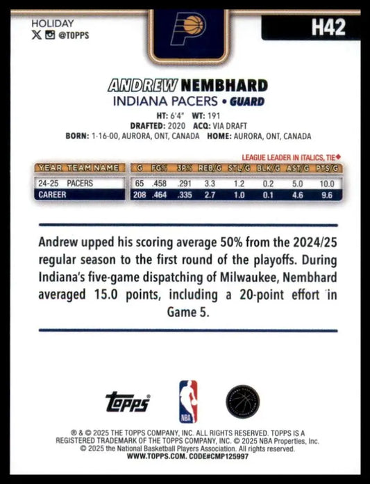2025-26 Topps Holiday Andrew Nembhard #H42 Indiana Pacers Basketball Card NBA