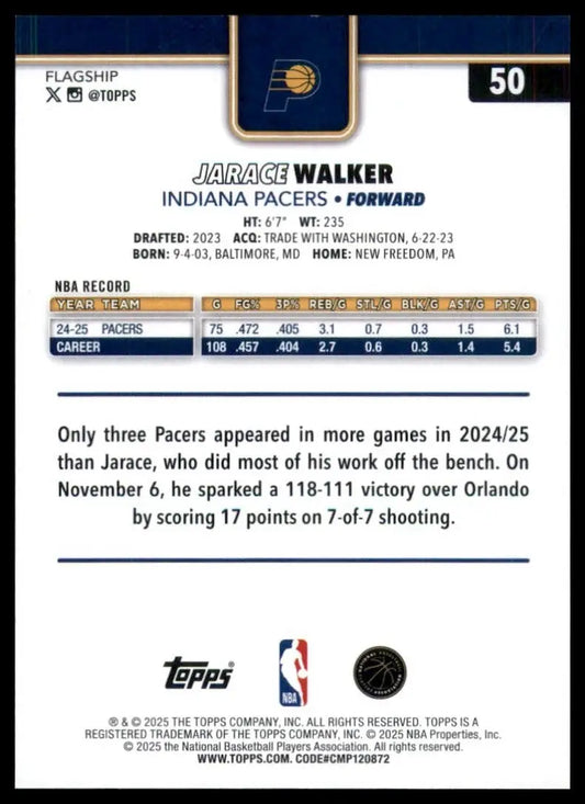 2025-26 Topps Jarace Walker #50 Indiana Pacers Basketball Card NBA Sports