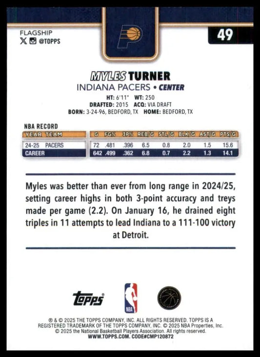 2025-26 Topps Myles Turner #49 Indiana Pacers Basketball Card NBA Sports