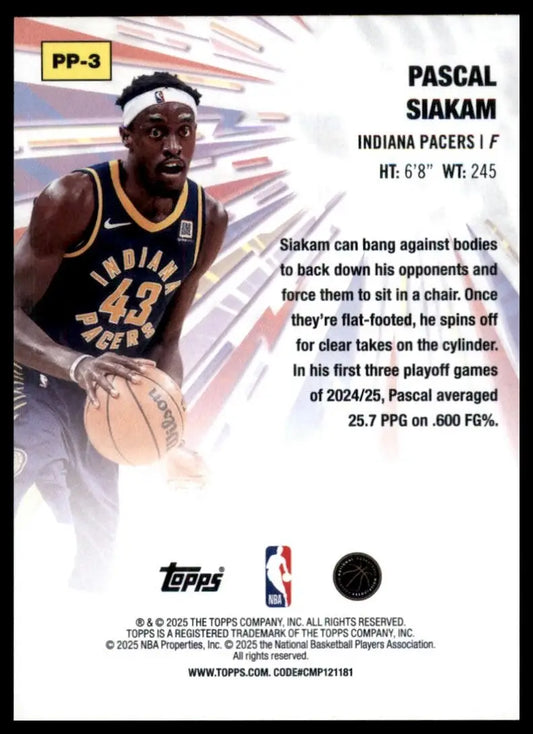2025-26 Topps Power Players Pascal Siakam #PP-3 Indiana Pacers Basketball Card