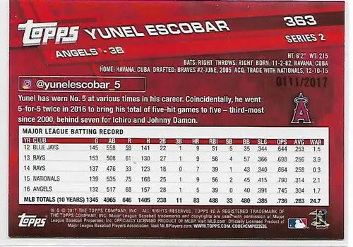 2017 Topps Gold #363 Yunel Escobar NM-MT 0111/2017 Angels ID:4898