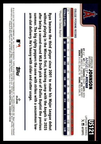 2025 Topps Update #US121 Ryan Johnson NM-MT RC Rookie Angels ID:80021