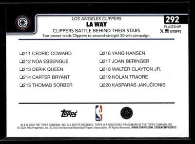 2025-26 Topps Rainbow Foil LA Way #292 Los Angeles Clippers Basketball Card NBA