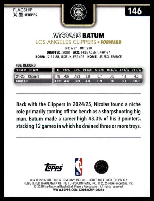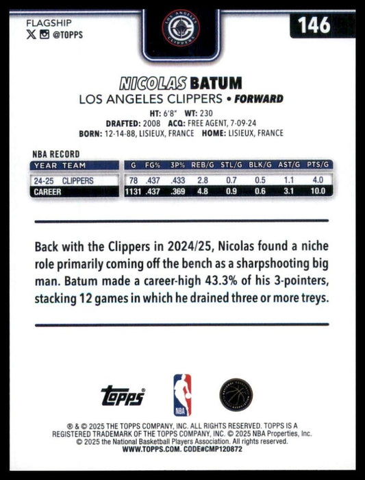 2025-26 Topps Nicolas Batum #146 Los Angeles Clippers Basketball Card NBA Sports
