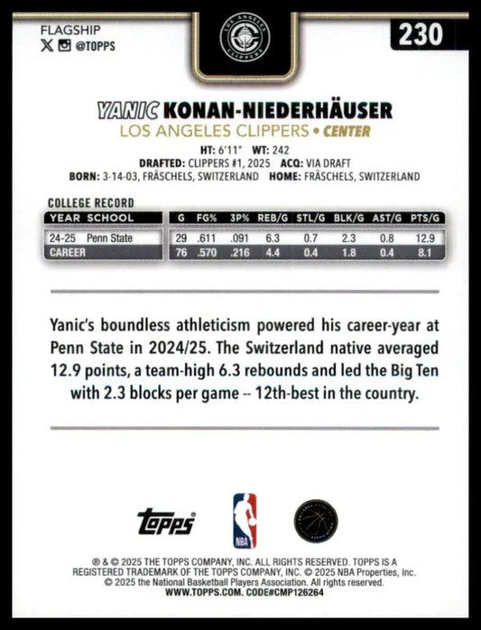 2025-26 Topps Blackout Yanic Konan Niederhauser Rookie #230 Los Angeles Clippers