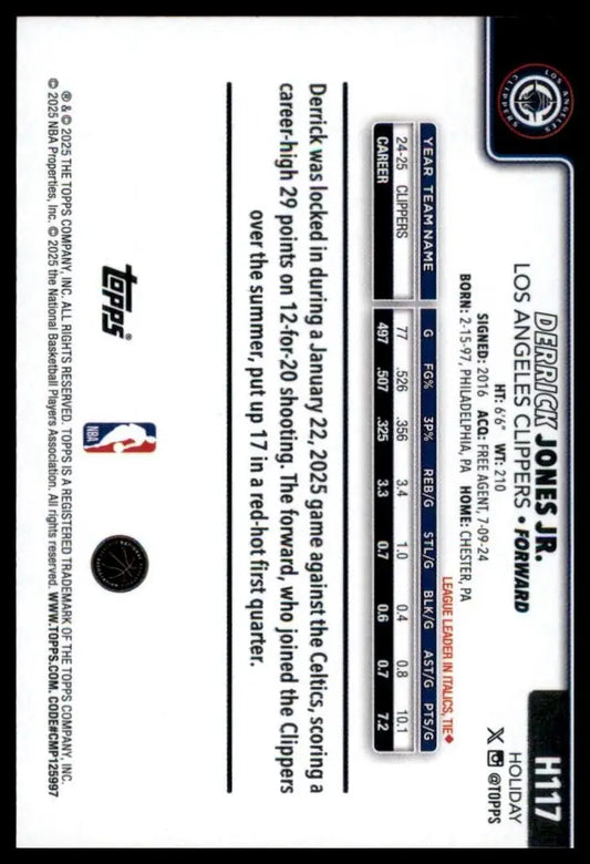 2025-26 Topps Holiday Derrick Jones Jr #H117 Los Angeles Clippers Basketball NBA