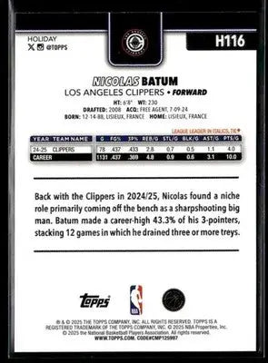 2025-26 Topps Holiday Nicolas Batum #H116 Los Angeles Clippers
