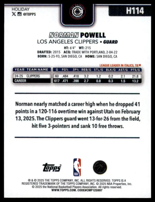 2025-26 Topps Holiday Norman Powell #H114 Los Angeles Clippers Basketball Card
