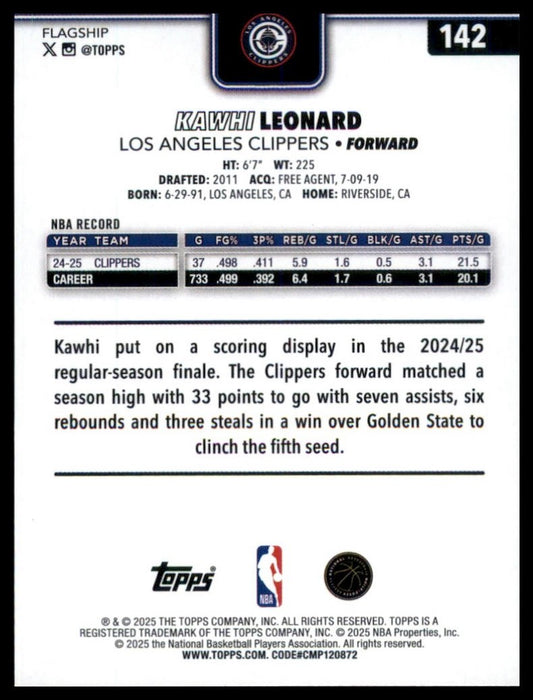 2025-26 Topps Kawhi Leonard #142 Los Angeles Clippers Basketball Card NBA Sports