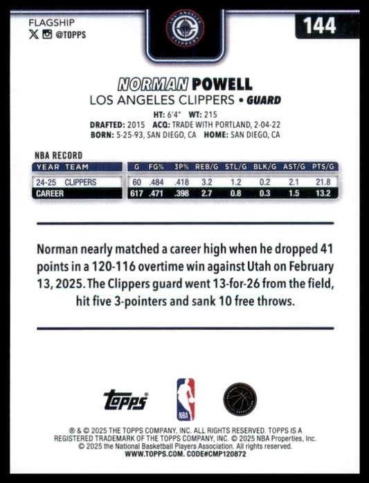 2025-26 Topps Norman Powell #144 Los Angeles Clippers Basketball Card NBA Sports
