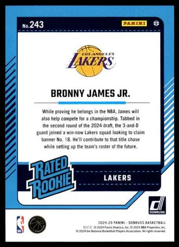 2024-25 Donruss #243 Bronny James Jr. NM-MT RC Rookie Lakers ID:79412