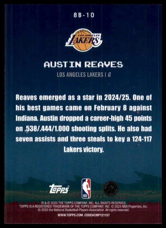 2025-26 8 Bit Ballers Austin Reaves #8B-10 Los Angeles Lakers Basketball Card