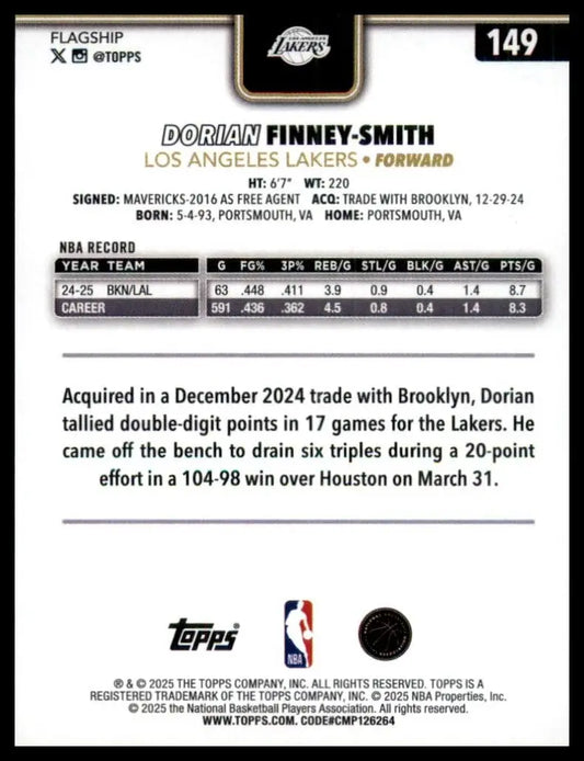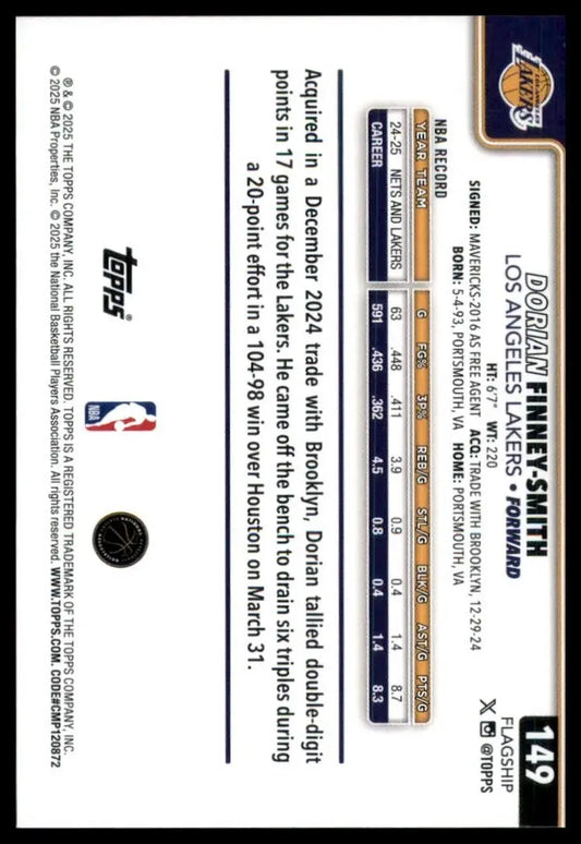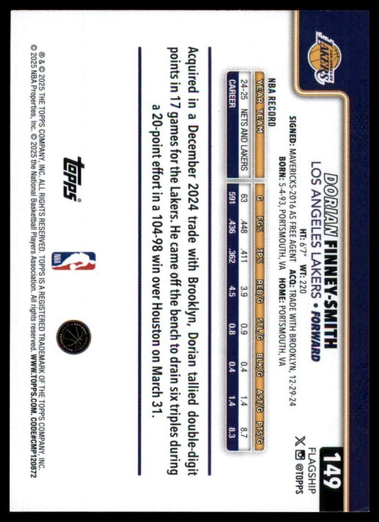 2025-26 Topps Dorian Finney Smith #149 Los Angeles Lakers Basketball Card NBA
