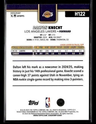 2025-26 Topps Holiday Dalton Knecht #H122 Los Angeles Lakers