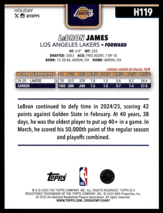 2025-26 Topps Holiday LeBron James #H119 Los Angeles Lakers Basketball Card NBA