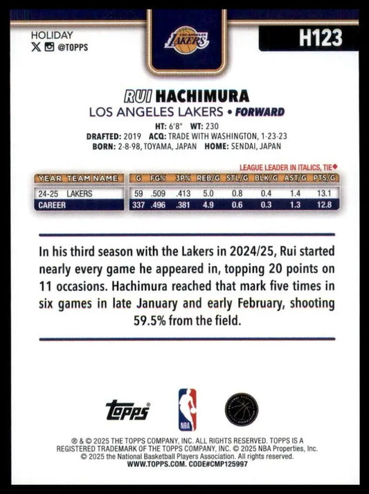 2025-26 Topps Holiday Rui Hachimura #H123 Los Angeles Lakers Basketball Card NBA
