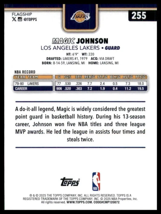 2025-26 Topps Holo Foil Magic Johnson #255 Los Angeles Lakers Basketball Card