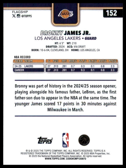 2025-26 Topps Bronny James Jr #152 Los Angeles Lakers Basketball Card NBA Sports