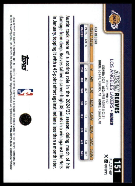 2025-26 Topps Austin Reaves #151 Los Angeles Lakers Basketball Card NBA Sports