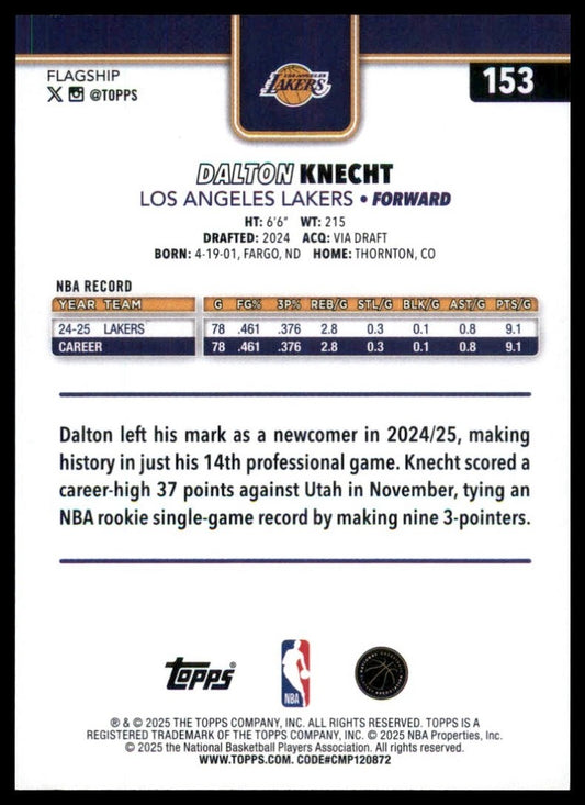2025-26 Topps Dalton Knecht #153 Los Angeles Lakers Basketball Card NBA Sports