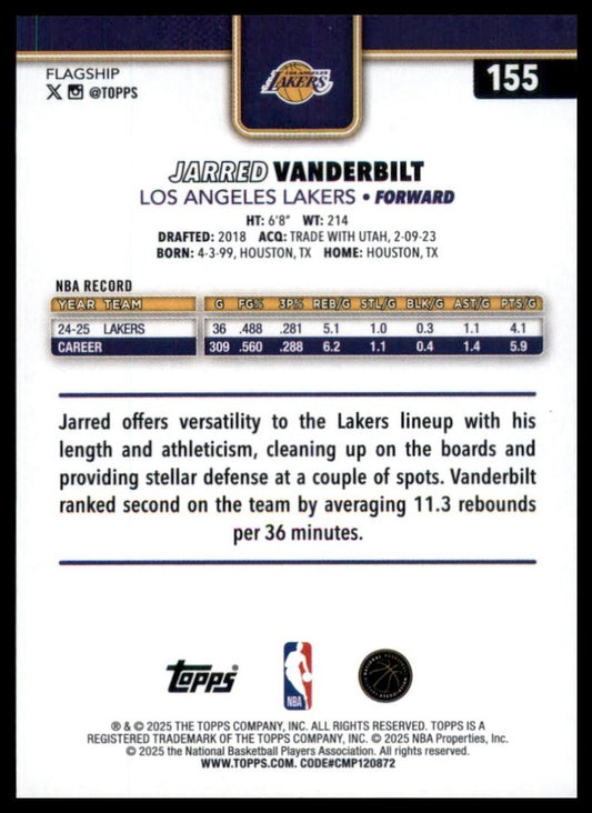 2025-26 Topps Jarred Vanderbilt #155 Los Angeles Lakers Basketball Card NBA