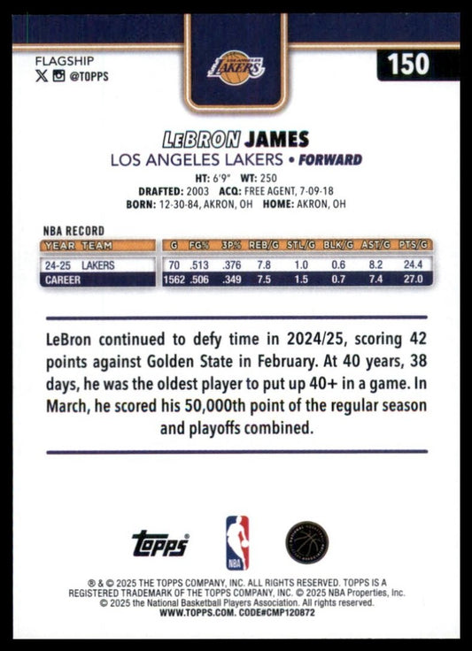 2025-26 Topps LeBron James #150 Los Angeles Lakers Basketball Card NBA Sports