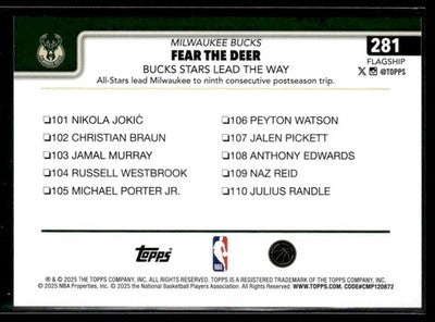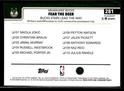 2025-26 Topps #281 Fear the Deer: Bucks Stars Lead the Way