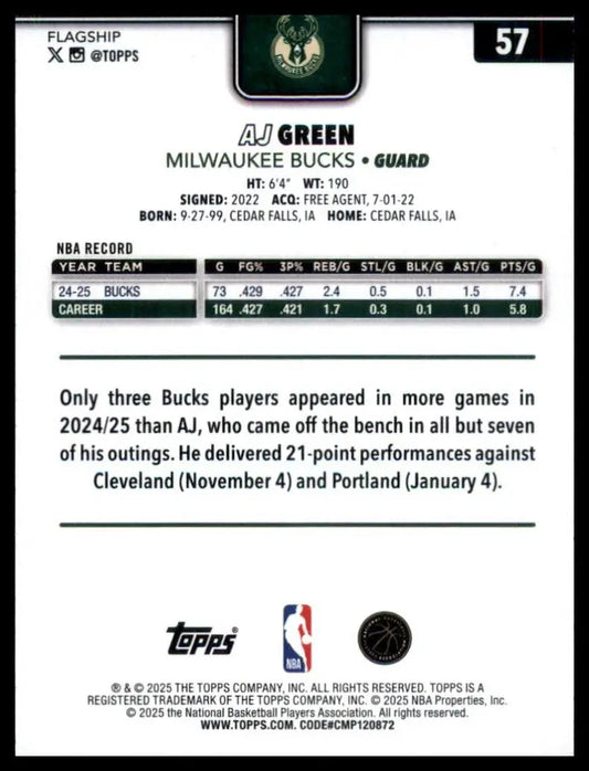 2025-26 Topps AJ Green #57 Milwaukee Bucks Basketball Card NBA Sports