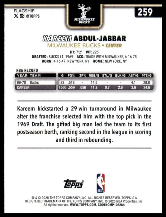 2025-26 Topps Blackout Kareem Abdul Jabar #259 Milwaukee Bucks Basketball Card