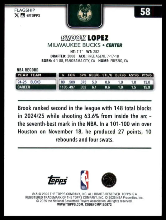 2025-26 Topps Brook Lopez #58 Milwaukee Bucks Basketball Card NBA Sports