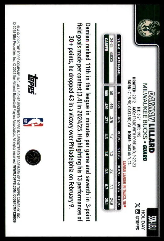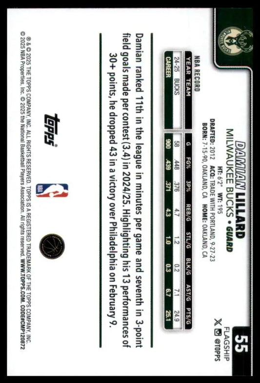 2025-26 Topps Damian Lillard #55 Milwaukee Bucks Basketball Card NBA Sports