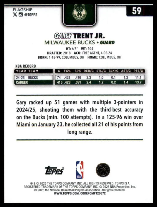 2025-26 Topps Gary Trent Jr #59 Milwaukee Bucks Basketball Card NBA Sports