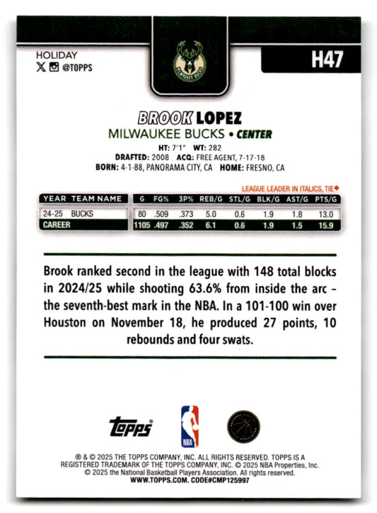 2025-26 Topps Holiday Plaid #H47 Brook Lopez NM-MT Bucks ID:79903