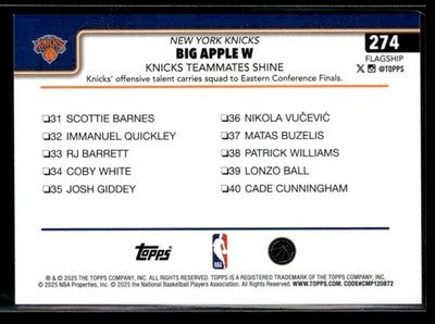 2025-26 Topps #274 Big Apple W: Knicks Teammates Shine