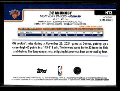 2025-26 Topps Holiday OG Anunoby #H13 New York Knicks