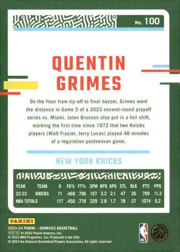 2023-24 Donruss #100 Quentin Grimes NM-MT Knicks ID:75356