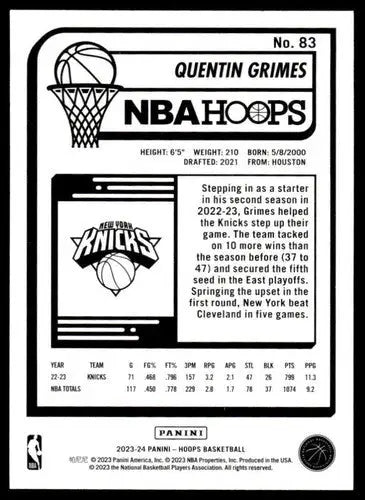 2023-24 Panini Hoops #83 Quentin Grimes NM-MT Knicks ID:68448