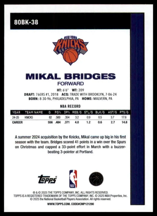 2025-26 Topps 1980-81 Anniversary Mikal Bridges #80BK-38 New York Knicks Card