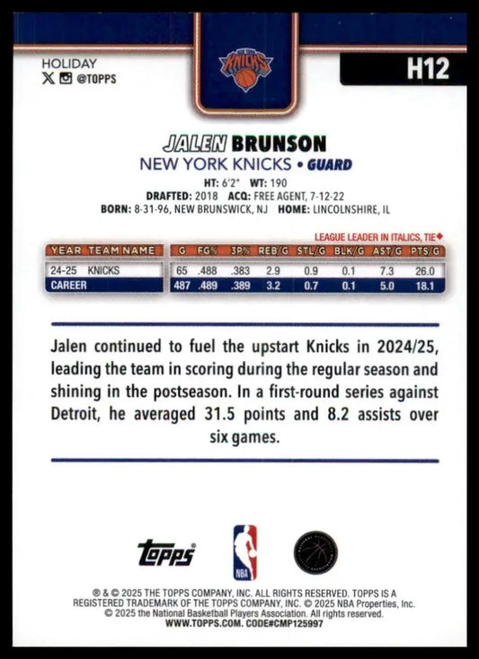 2025-26 Topps Holiday Jalen Brunson #H12 New York Knicks Basketball Card NBA