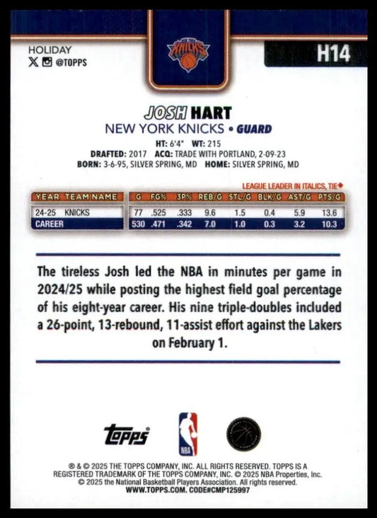 2025-26 Topps Holiday Josh Hart #H14 New York Knicks Basketball Card NBA Sports